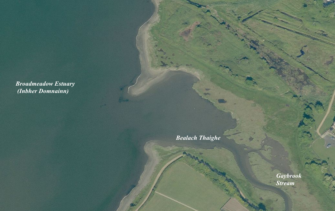O’Neill suggests that “the names given to Malahide on the road-signs “Maol de hÍde” and “Mullach Íde” are mere guesses at the meaning.” He also speculates that “Bealach Thaighe” was named for someone who was “probably killed at the ford or performed some feat there”. Maybe there is some connection to the ancient past of the Broadmeadow estuary.